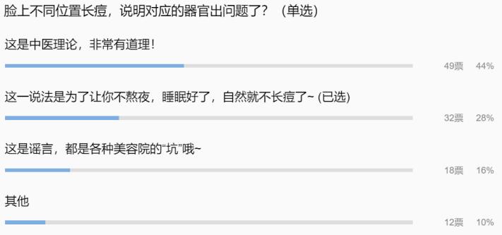 小编做的小调查显示:44%的人对此说法深信不疑这个说法乍一听觉得很有道理,实际上我要给大家泼一盆冷水——长痘痘的部位和内脏之间没有明确关系。