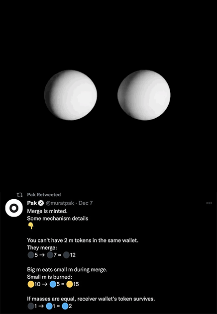Pak的这件“Merge”究竟有何独到之处?被人们如此的津津乐道,从创作形式上,作品的最小单位是Mass,作品是无限量发售,任何人都可购买任何数量的Mass,Mass可以理解为“Merge”的代币,也就是说买家并未购买实际的以太坊NFT,而是购买了Mass代币,这些代币在销售后组合起来,创造出动态的、独特的NFT收藏品。