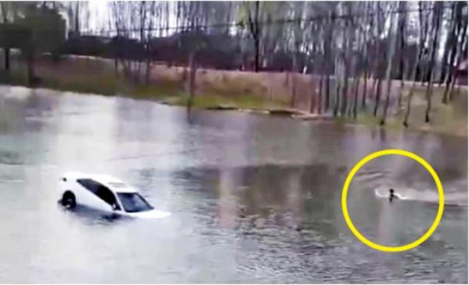 救人者房玉翔向落水车辆游去据了解