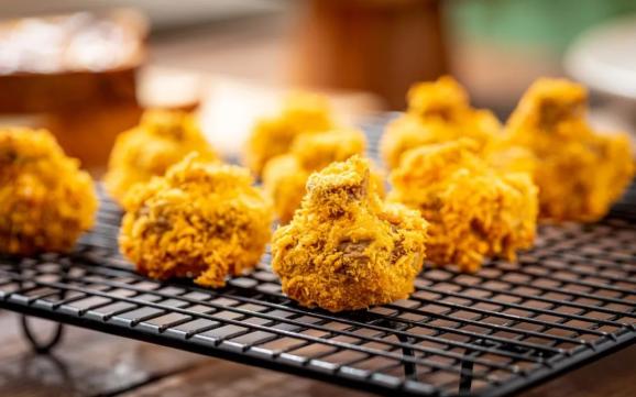 6.设定180℃,根据鸡翅大小炸12-15分钟,取出即成。