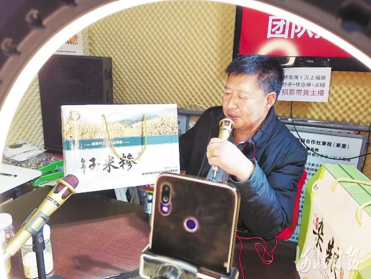 图为日前,易县南城司供销社主任赵志勇通过直播销售山货。河北日报记者李连成摄·搭平台