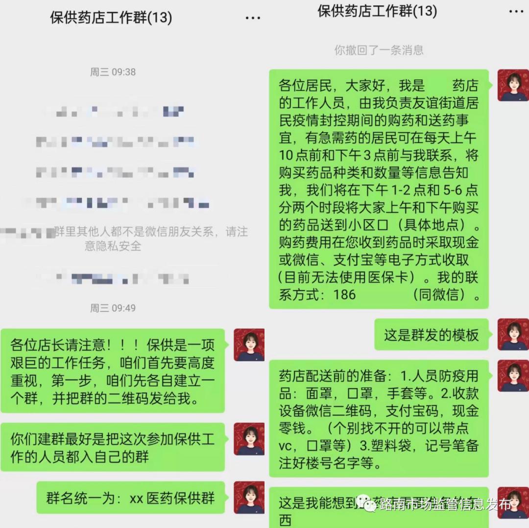 为避免人群聚集带来病毒传播风险,药店全面暂停线下用药,路南区市场监督管理局与保供单位群策群力,推出了三种售药渠道,以友谊分局辖区内唐人医药燕京路店为例,主要以线上app、微信群、电话三种渠道进行售药,特别是微信群内有专业人员提供用药指导,对不方便操作的老年人进行一对一服务。