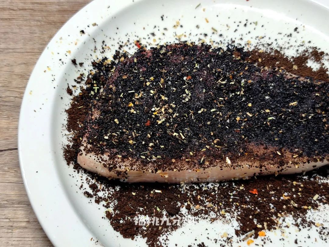 前面提到过,咖啡渣的应用大多都是这种,也是西方家庭用的比较多的方式,和香料调料混合在一起涂在肉类表面(牛排、猪肋排、鱼都可以)然后烤制。