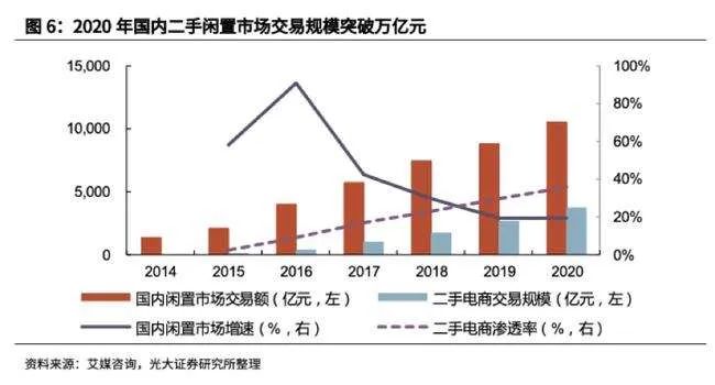 根据艾媒咨询数据显示,中国的二手交易规模在2015年还不足3000亿元,到2020年已经突破成了万亿市场。有关机构预测,到2025年,中国的二手交易规模将达到3万亿。