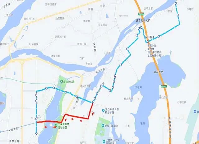2、调整后线路走向:公交创新二路北停车场—创新二路—艾溪湖南路—京安路—高新大道—顺外路—洪都大道—南京路—叠山路—胜利路—八一桥;