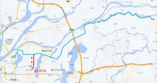 2、调整后线路走向:保利东湾—京东大道—艾溪湖隧道—昌东大道—艾溪湖三路—创新二路—艾溪湖南路—天祥南大道—齐城岗大道—瑶湖西大道—山湖村;