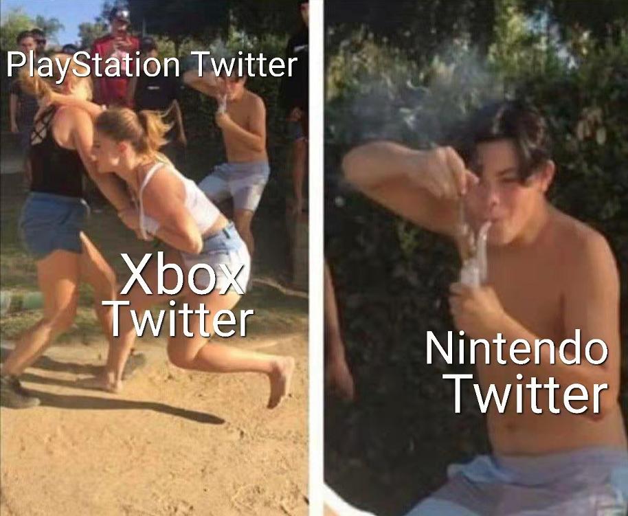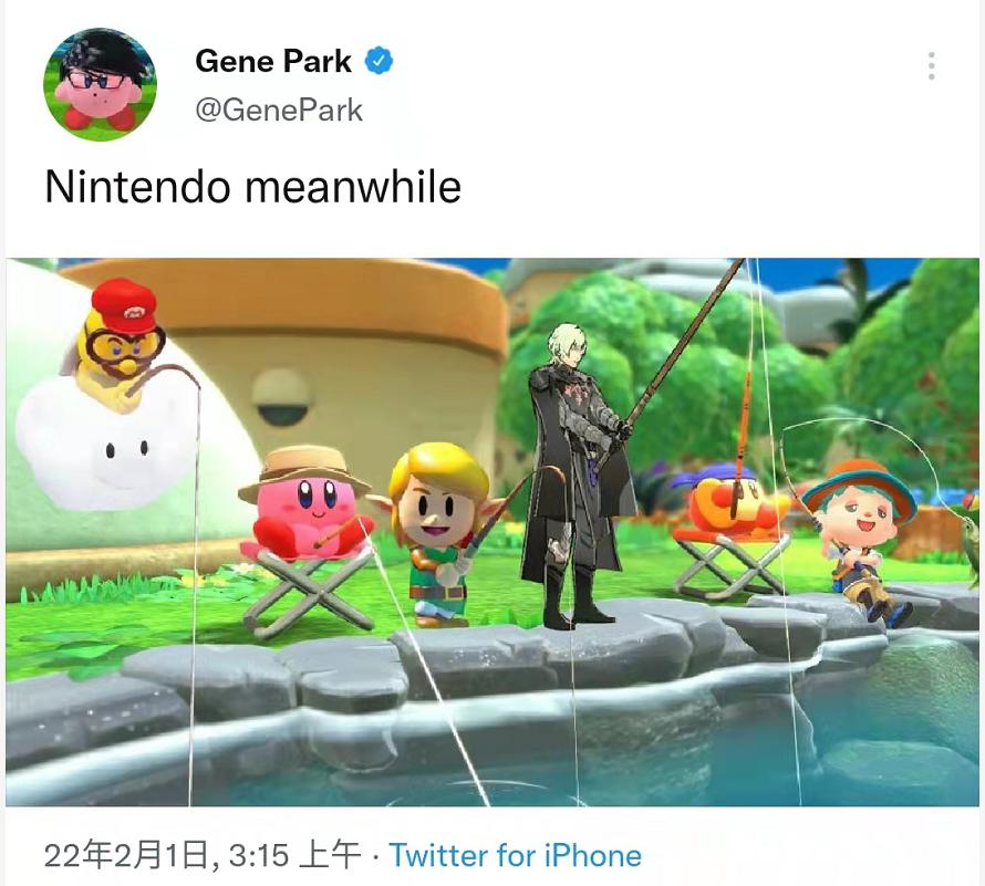 而此时,作为御三家之一的任天堂,却过得跟个圈外人似的,甚至在官方推特上,让卡比悠哉地钓起了鱼。
