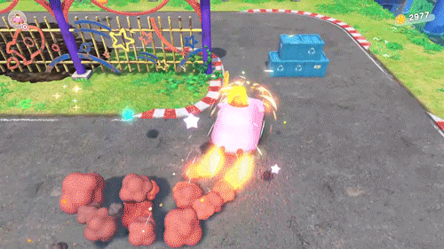 不仅仅是吞车,本作里,卡比还可以吞下地图中的更多东西,比如梯子、灯泡、路障等。而根据吞下的道具不同,获得的能力也会有所不同。