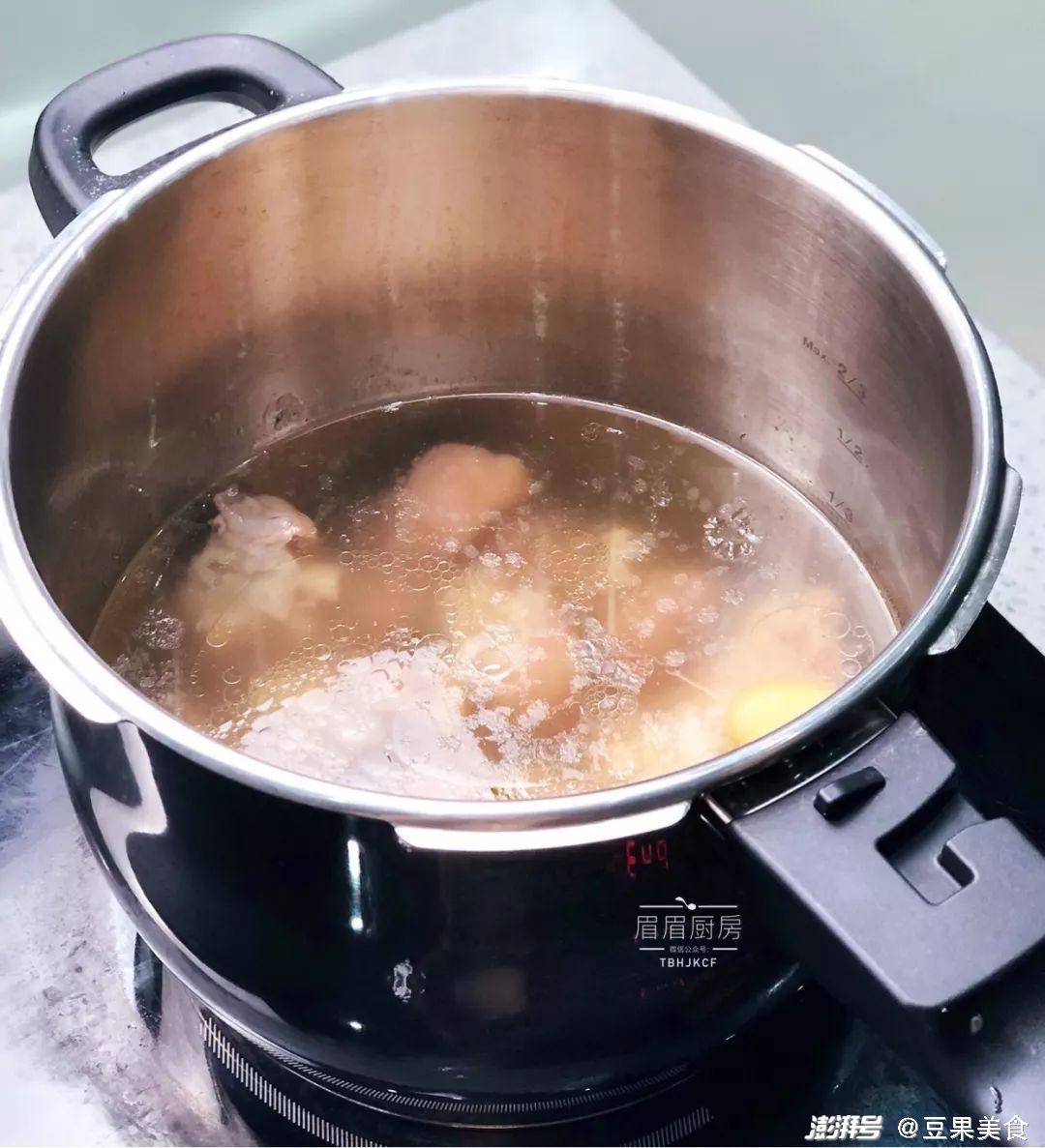 3. 盖上压力锅锅盖,大火煮上压,调小火,煮15分钟即可。