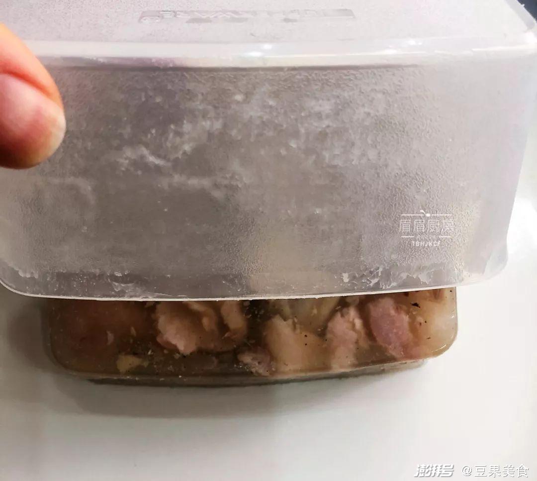 7. 放入冰箱冷藏2小时左右,待冷却凝固后去掉上面的油脂。