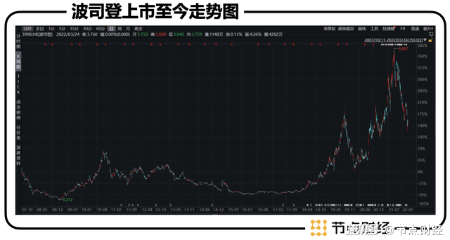决定资本市场走势的都是聪明钱,完美的向我们呈现了波司登多元化道路的几个转折点,08年国际金融危机引发的业绩下降、而后几年的转型收获以及13年以后的至暗时刻,这一波操作直接将波司登的股价推至冰点,在五毛左右徘徊了两年。