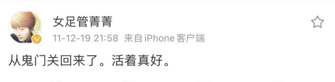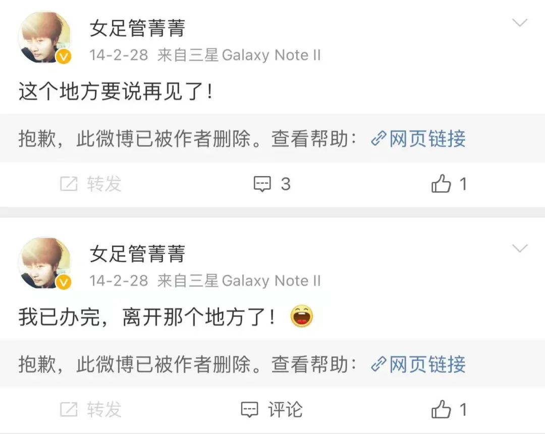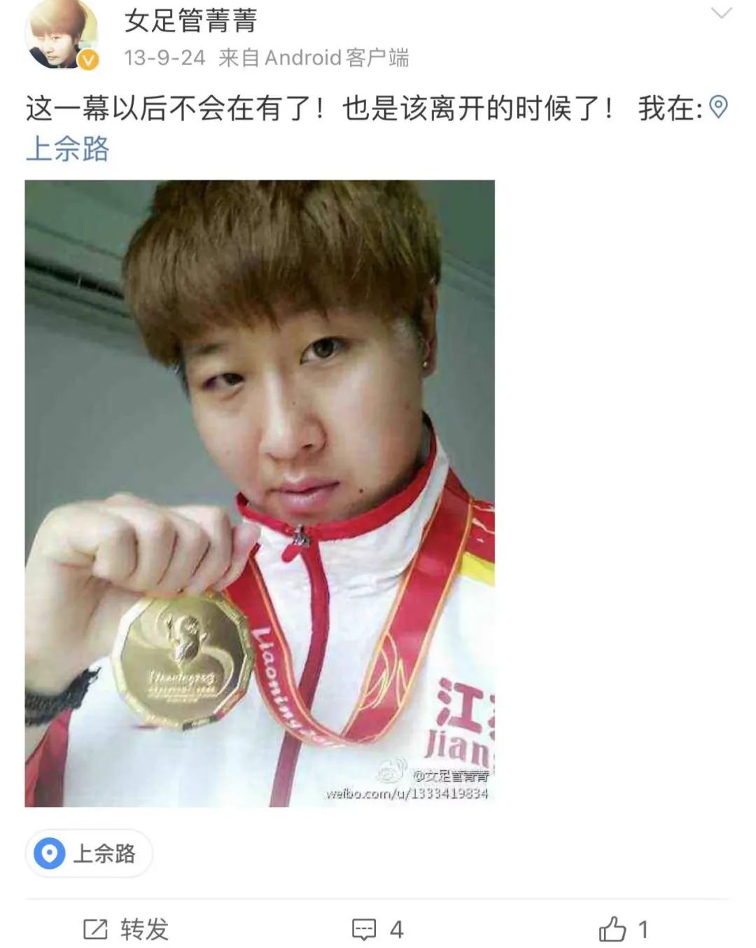 2014年2月28日,早上十点,管菁菁一个人踏出江苏女足训练基地的大门,她用一个月前庆祝跨年买的手机,连发了两条微博。