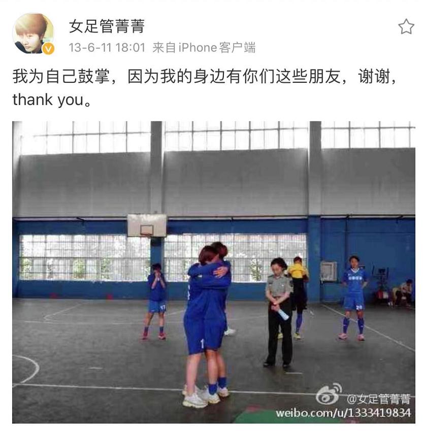 管菁菁曾在微博上声援过陷入困境的女足队员退役,她从开始踢球以后从来没想过的两个字,此刻悄然爬上了心头。