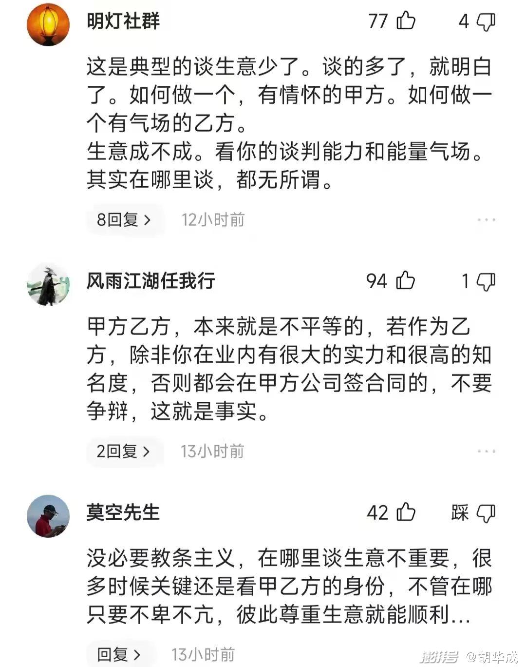 那是因为我站在了咨询的角度来看问题的,昨天提到的刘润老师也是做咨询的,他的行为跟我的想法产生了共振,因此才建议大家不要到对方公司洽谈。当然,任何没有前提条件的结论都是耍流氓,我也对昨天观点的不完善表示歉意。