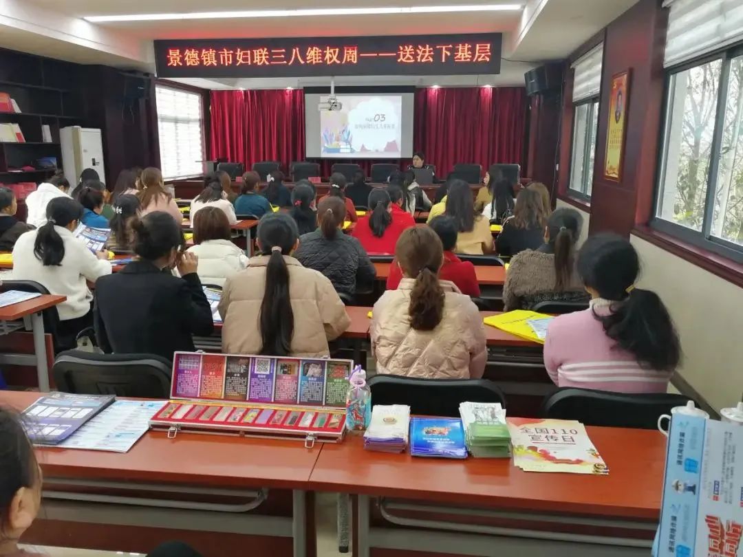 景德镇市景德镇市妇联在丽阳镇政府开展“维护她权益 联起幸福家”为主题的法律知识宣讲活动,邀请市公安干警、律师宣讲《民法典》、《家庭教育促进法》、家教知识等妇儿权益维护法律知识,制作发放宣传册约2000余册。在黄坛乡集镇利用群众每周一次“赶集市场”的契机,张贴横幅,向妇女群众发放维权书刊、宣传单等宣传品200余套。全市各级巾帼志愿者们还深入村组,进村入户发放宣传手册。