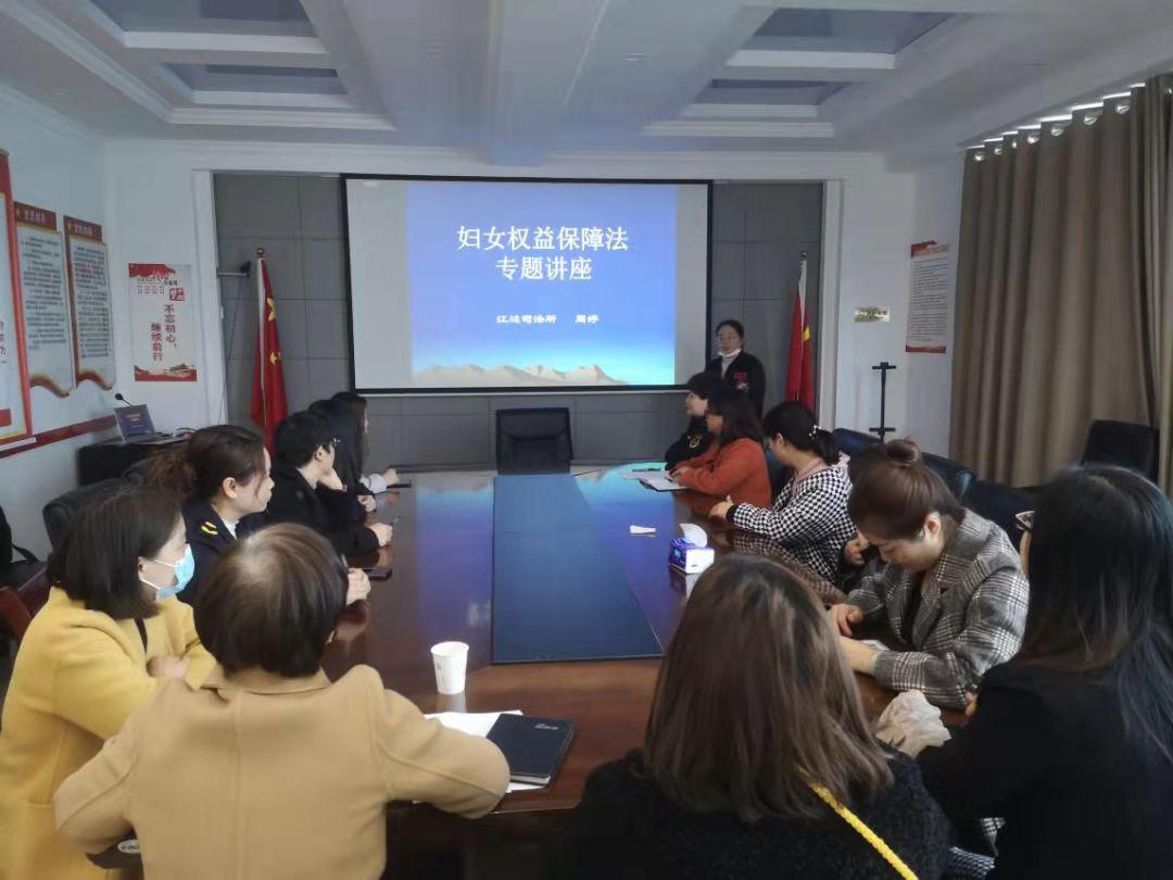 九江市九江市妇联积极开展“城乡女性法律明白人培养工程讲座——送法进企业”宣传活动,为企业女职工送上一份三八妇女节“普法套餐”,引导企业女职工通过法律渠道维护自身的合法权益。
