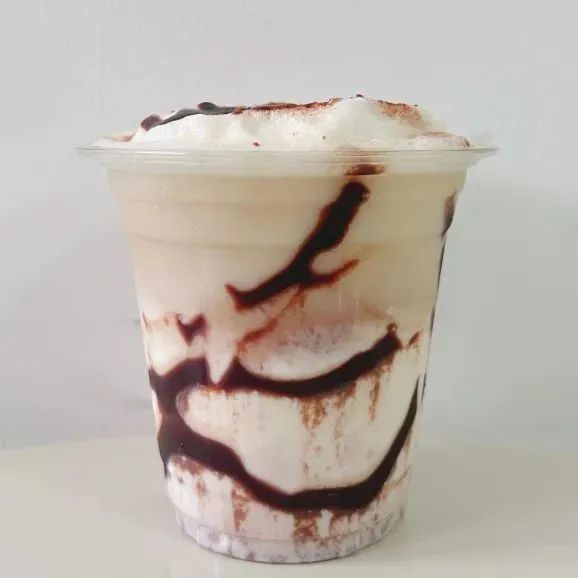 为了增加卖相,顺应年轻人拍照发朋友圈的喜好,还可以将冰广式升级出雪顶、挂壁特效等,把冰广式卷出新高度。巧克力酱+可可粉+牛奶+芦根淡竹茶=「摩卡凉茶」