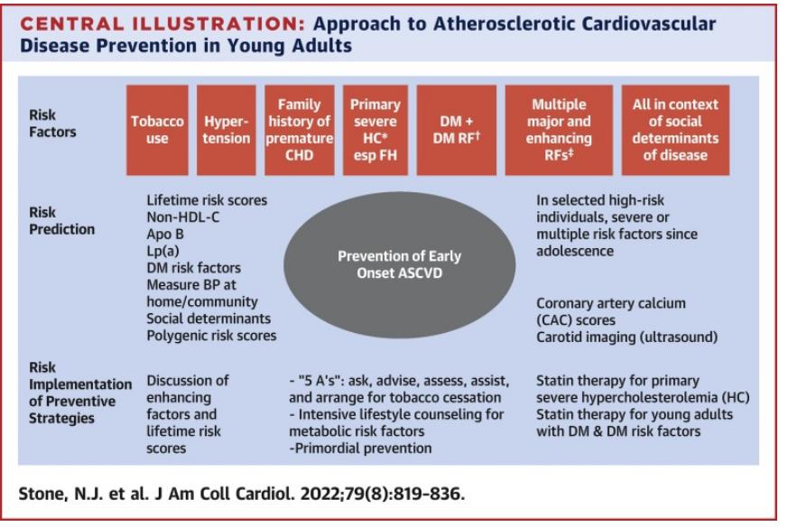 2022年3月1日,发表在《美国心脏病学会杂志》(JACC)的一篇综述对识别和控制年轻成人ASCVD危险因素的策略进行了总结。