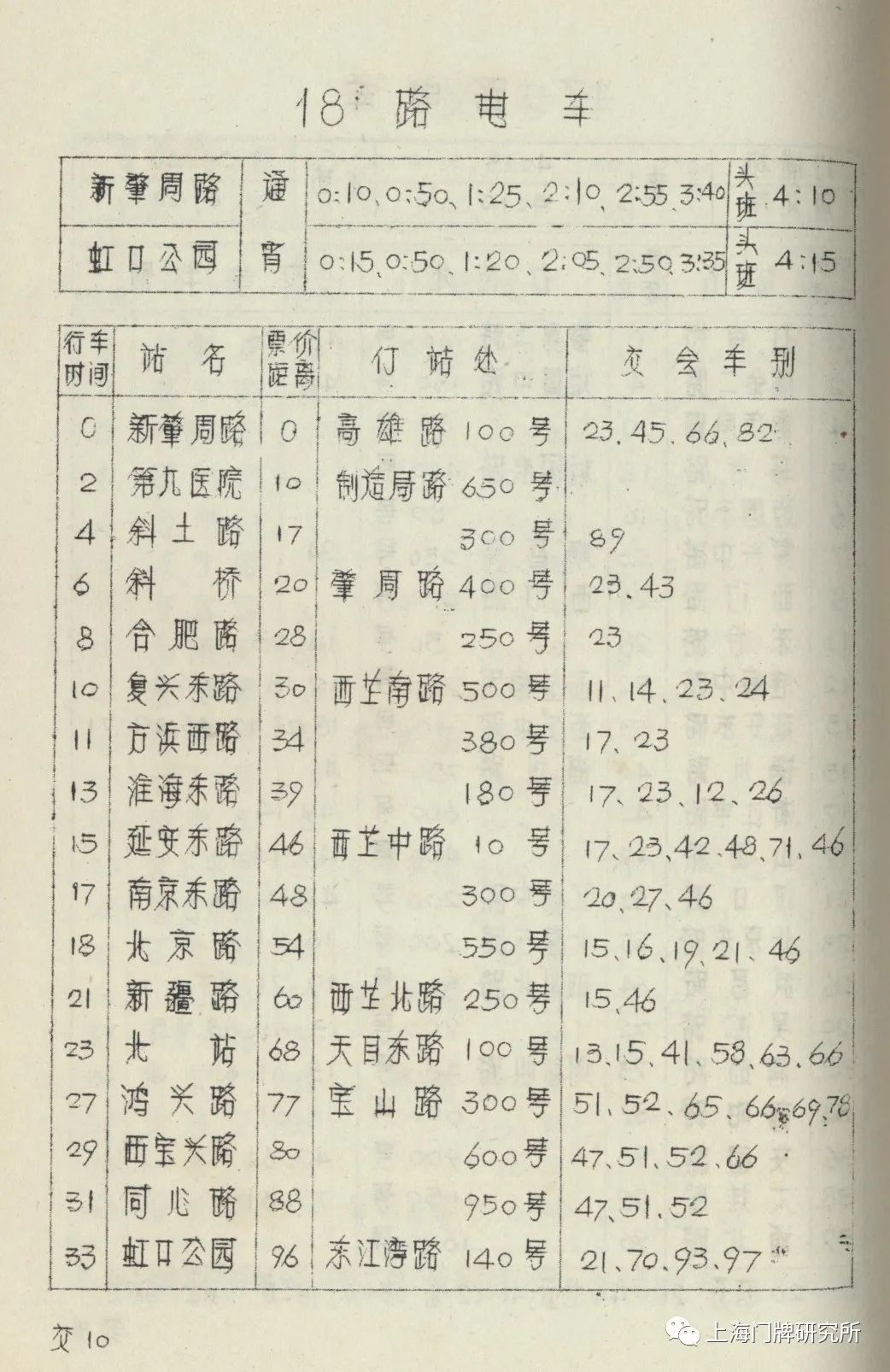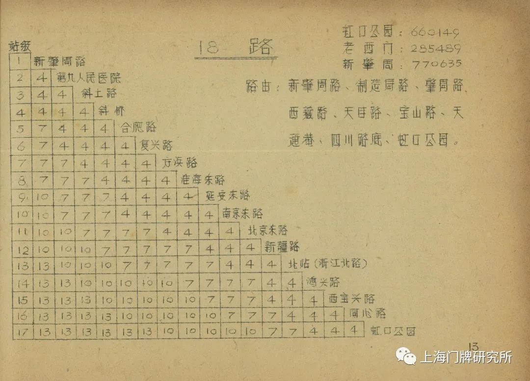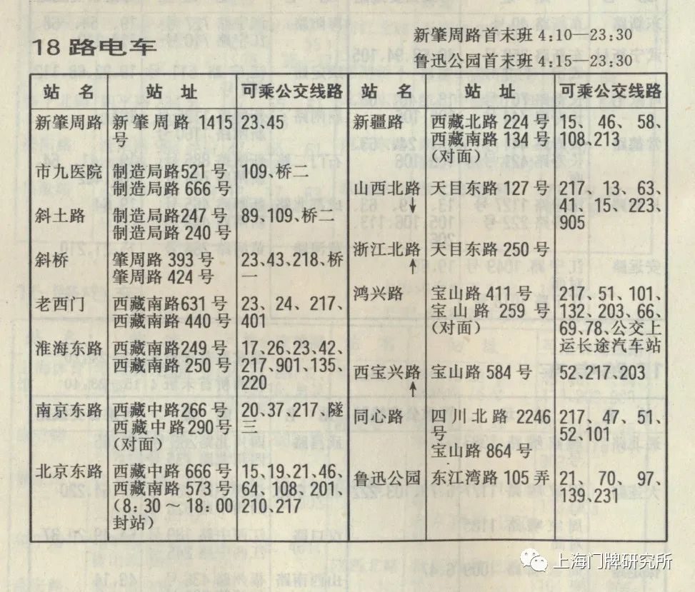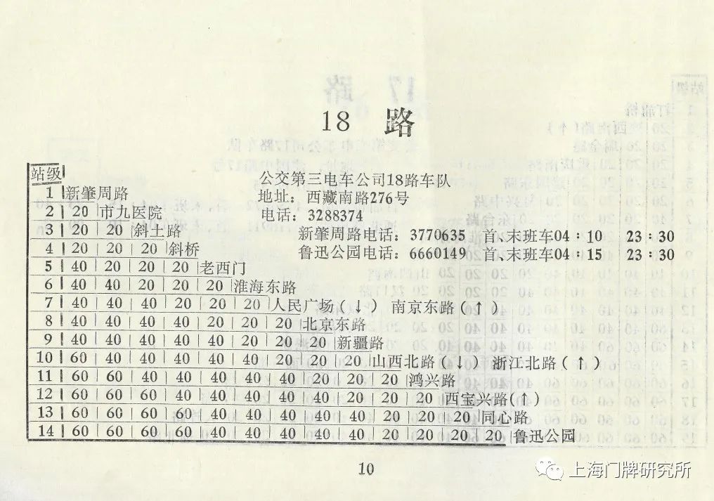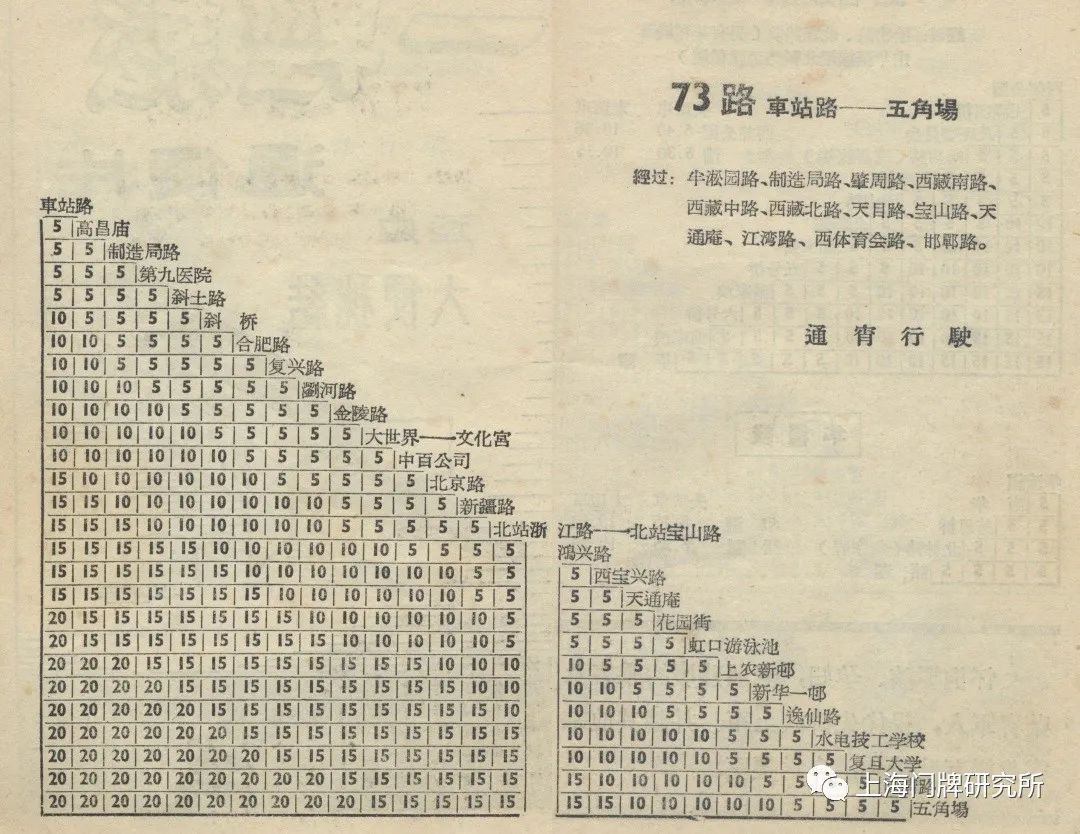 1965年票价表:73路1969年5月,73路公共汽车(新肇周路—虹口公园)线路撤销,同步调整18路电车。