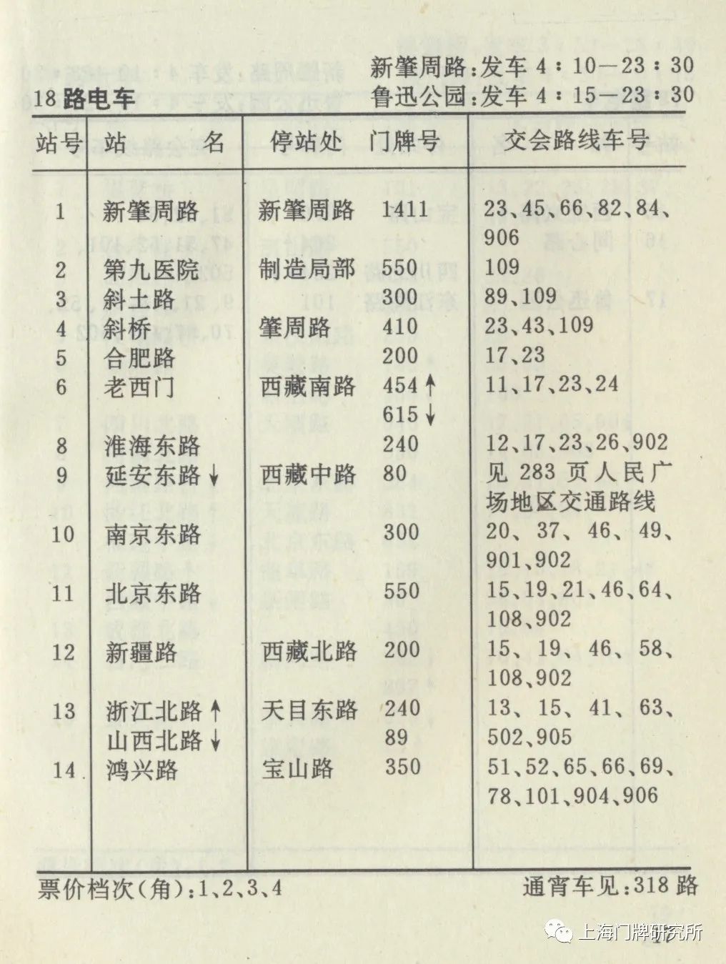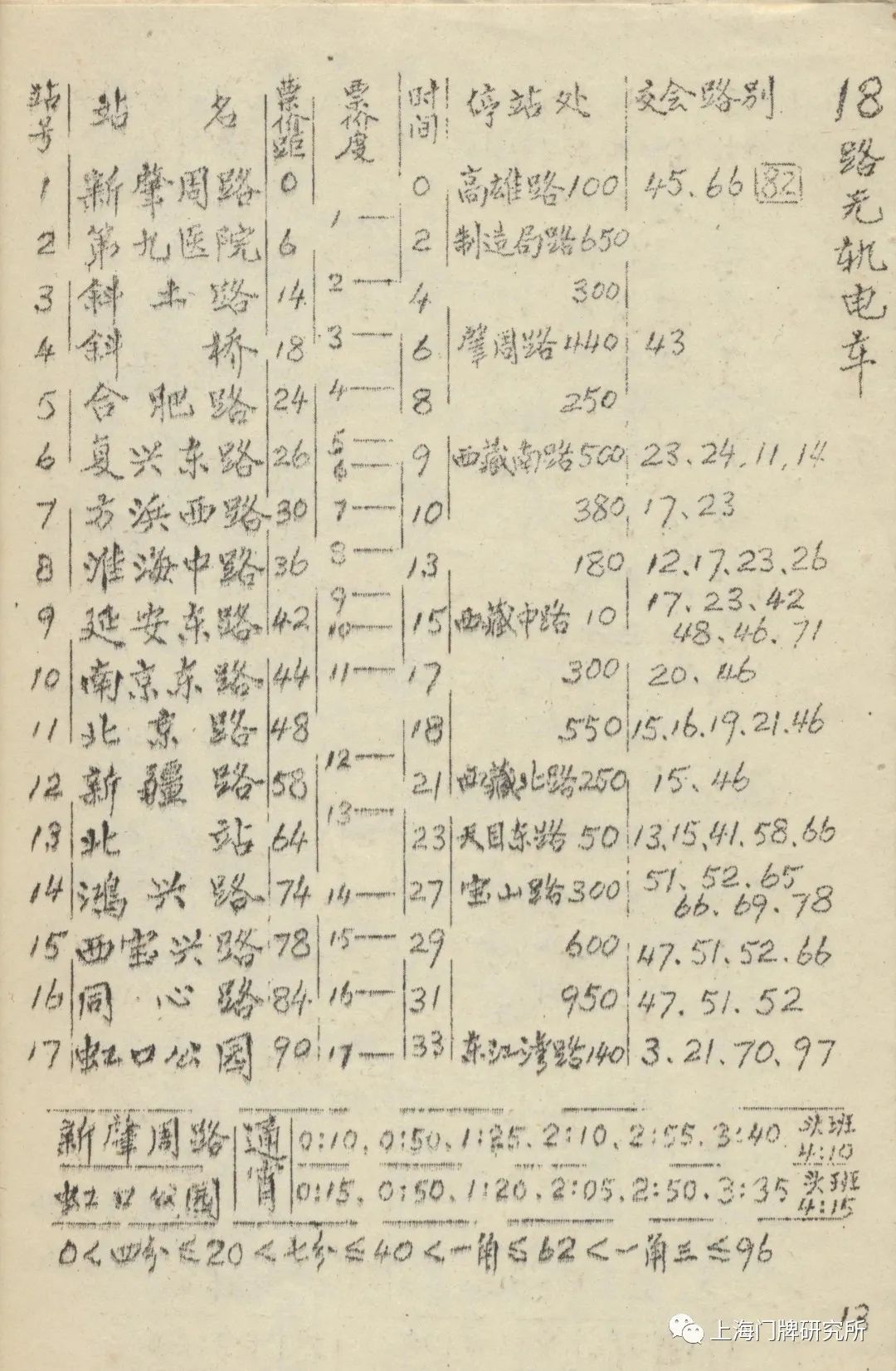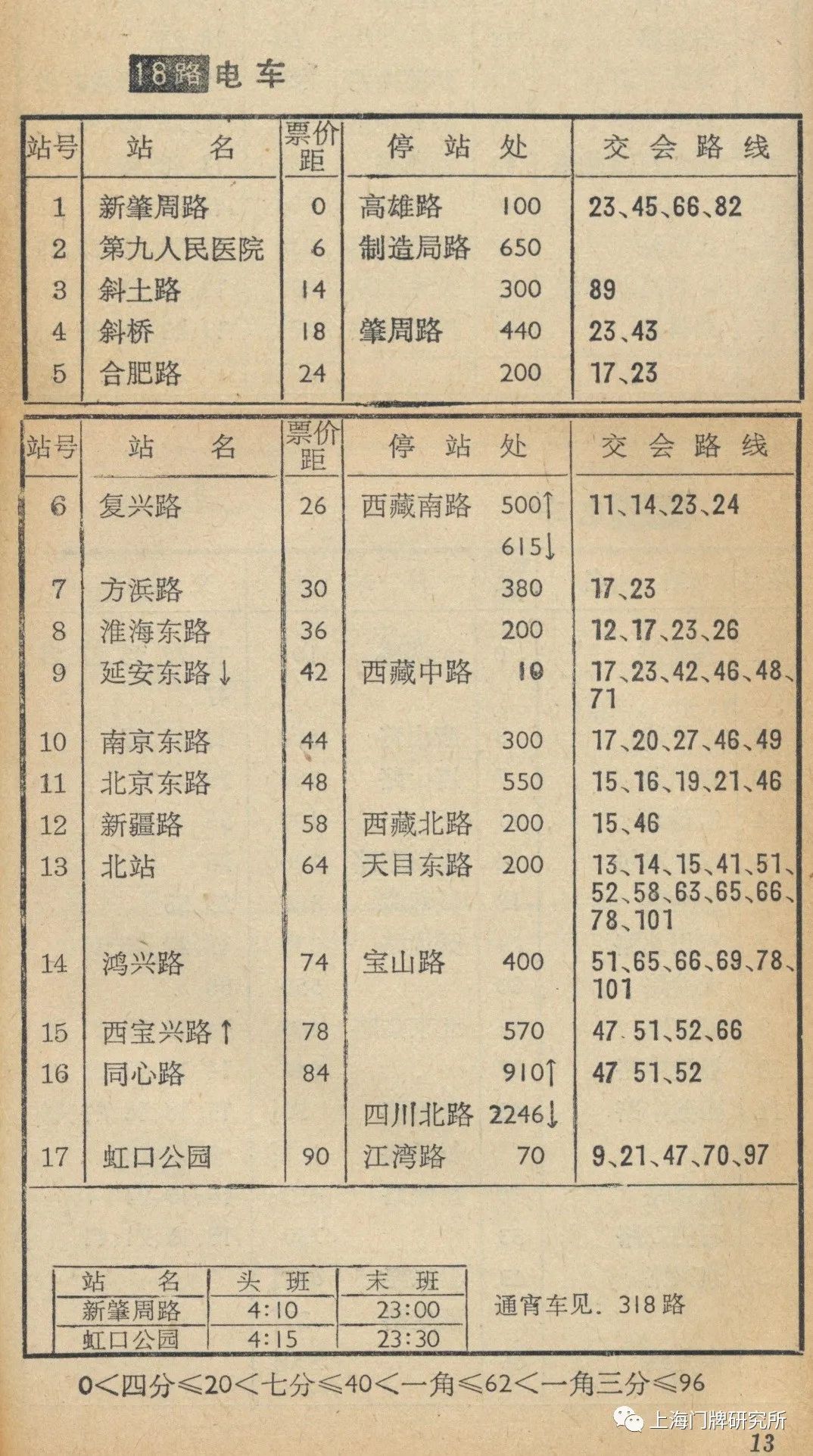 1965年票价表:73路1969年5月,73路公共汽车(新肇周路—虹口公园)线路撤销,同步调整18路电车。