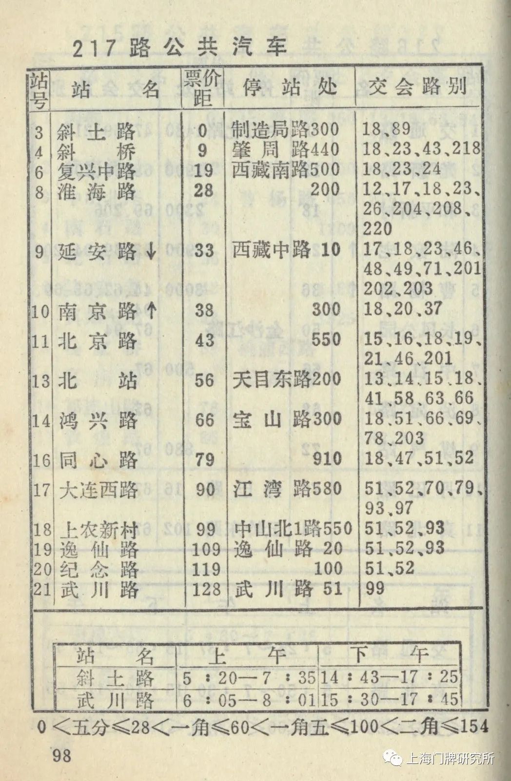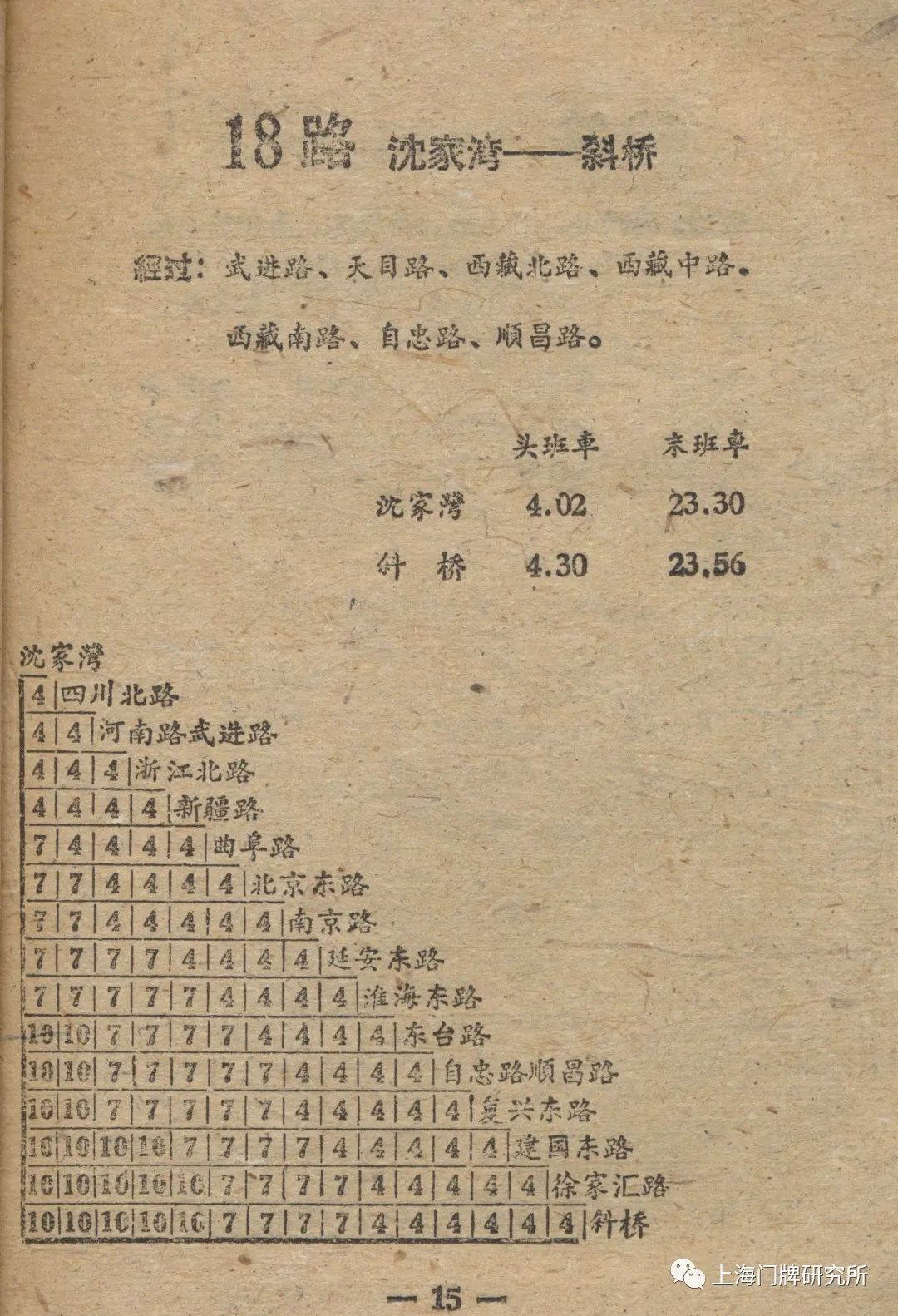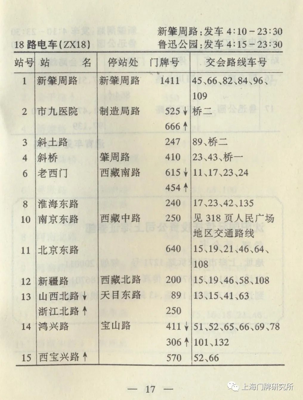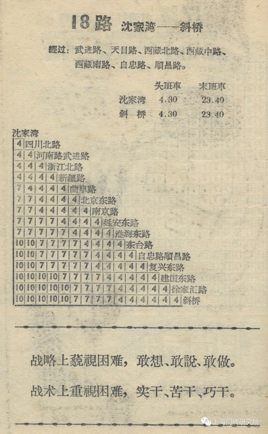 1965年票价表:73路1969年5月,73路公共汽车(新肇周路—虹口公园)线路撤销,同步调整18路电车。
