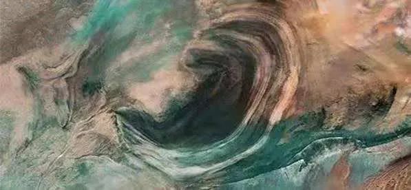 ▲罗布泊卫星云图。罗布泊位于新疆东南部塔克拉玛干沙漠边缘,曾被人们称为“死亡之海”。从卫星云图上看,它还有一个好听的名字——“地球之耳”