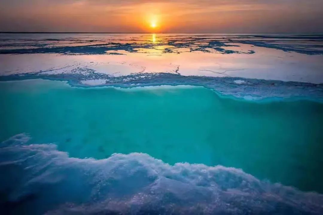 ▲盐花绽放别样美,旭日夕阳显圣洁