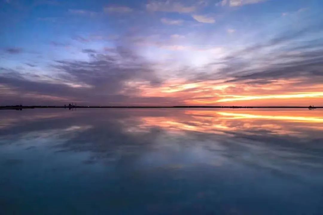 ▲红霞染尽半边天,夕阳唯美映盐湖