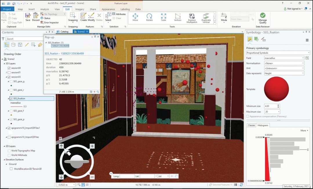 借助空间分析和眼动追踪技术,团队随后能够确定哪些建筑元素在游客身处虚拟空间中移动时引起了他们的注意,同时生成数据,输出到第三方软件中,并将输出数据导入3D GIS环境。