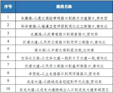 (一)节假日期间,天府大道南四段、剑南大道南段、牧华路三段、麓山大道麓山国际社区一号门路口(华阳往龙泉方向)、东山大道二段成自泸高速兴隆收费站至合江加油站路段、东山大道五段成自泸高速大林收费站路段,易发生交通拥堵,建议驾驶员朋友提前绕行。