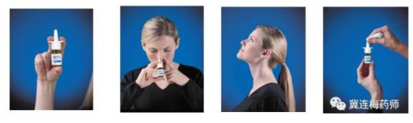 2、使用激素鼻喷剂时,瓶身直立或可稍侧向鼻翼,保持头部微微前倾,喷完药避免头部马上仰回来,因为这会导致药物从鼻子流到喉咙;
