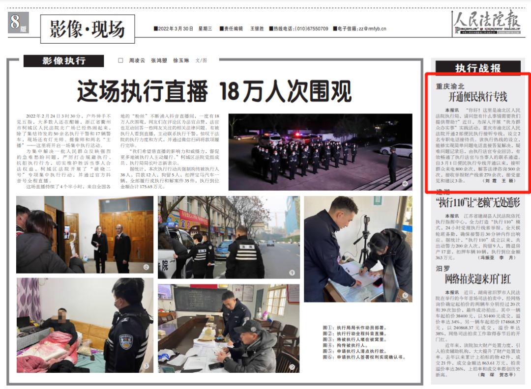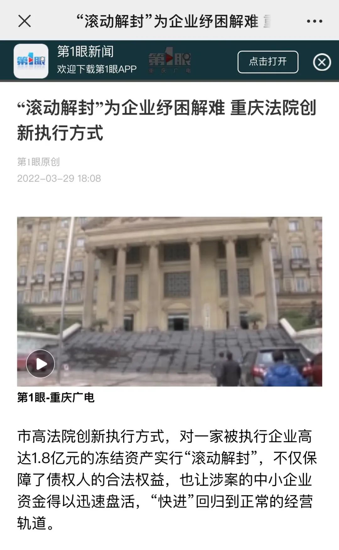重庆电视台:“滚动解封”为企业纾困解难 重庆法院创新执行方式