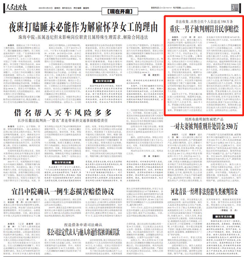 人民法院报:非法收集、出售公民个人信息近350万条 重庆一男子被判刑罚并民事赔偿