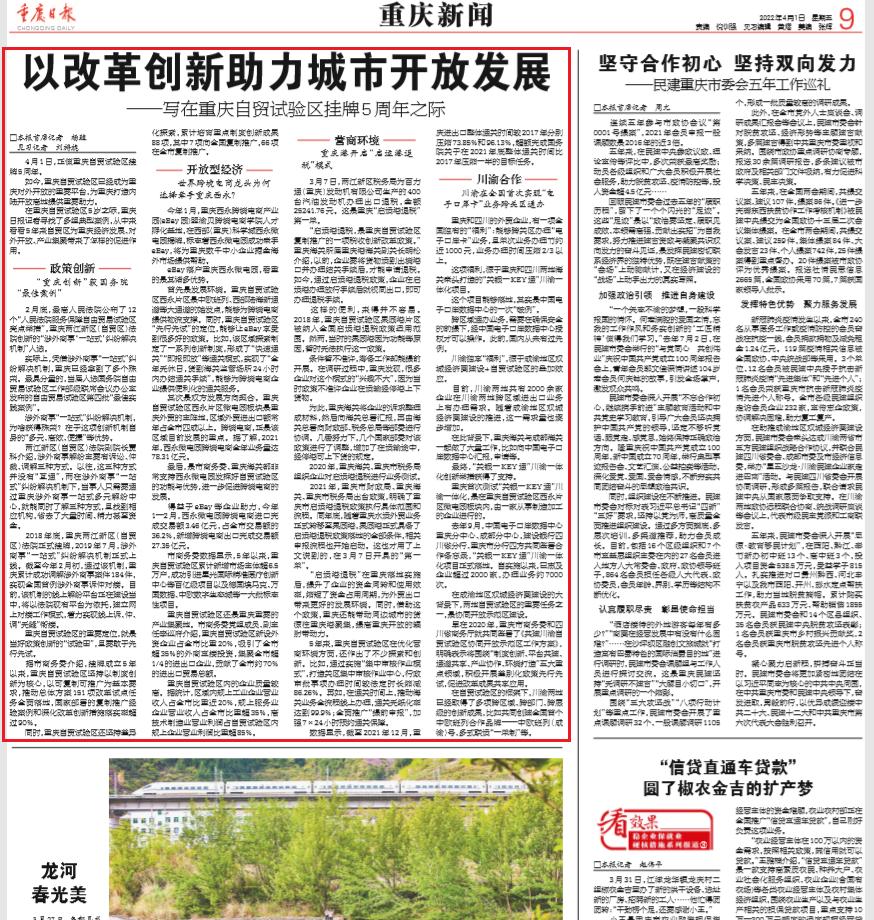 重庆日报:以改革创新助力城市开放发展——写在重庆自贸试验区挂牌5周年之际