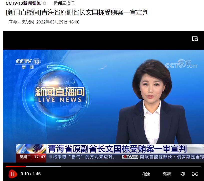 中央电视台、人民日报客户端、新华社客户端、央视新闻客户端、法治日报、人民法院报、检察日报、中国新闻网:青海省原副省长文国栋受贿案一审宣判
