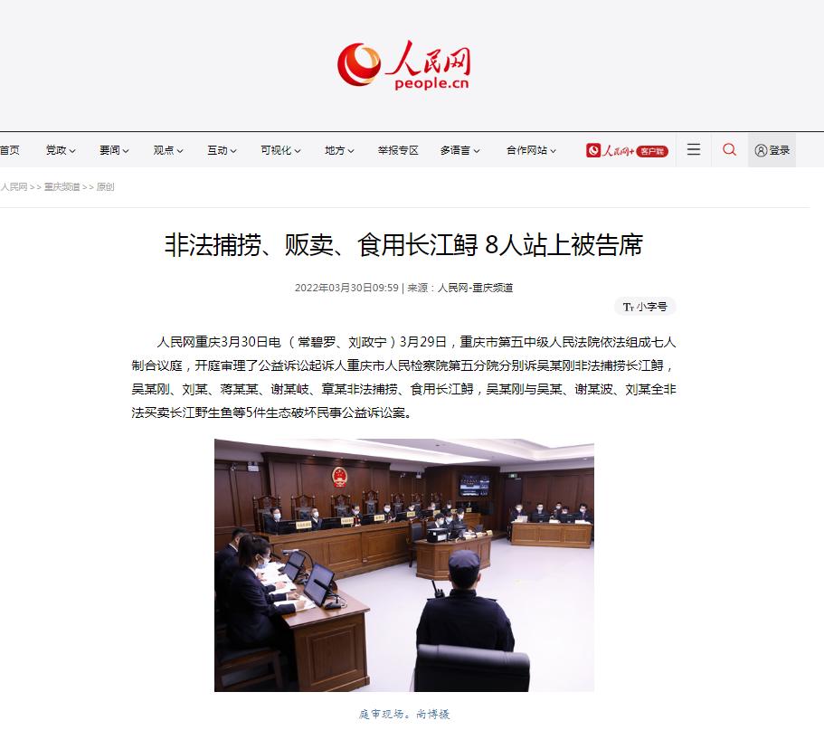 人民网、新华网、央视新闻、中国网、国际在线、中国新闻网、重庆日报、重庆电视台、华龙网、上游新闻、重庆法治报、重庆长安网、重庆之声、重庆交通广播、七一客户端:非法捕捞、贩卖、食用长江鲟 8人站上被告席