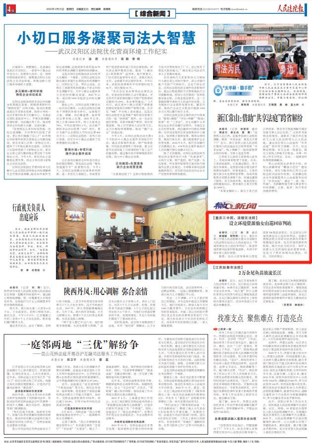 人民法院报、法治网:【重庆三中院、涪陵区法院】设立环境资源仙女山巡回审判站
