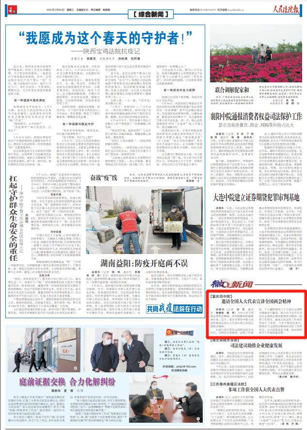 人民法院报:【重庆四中院】邀请全国人大代表宣讲全国两会精神