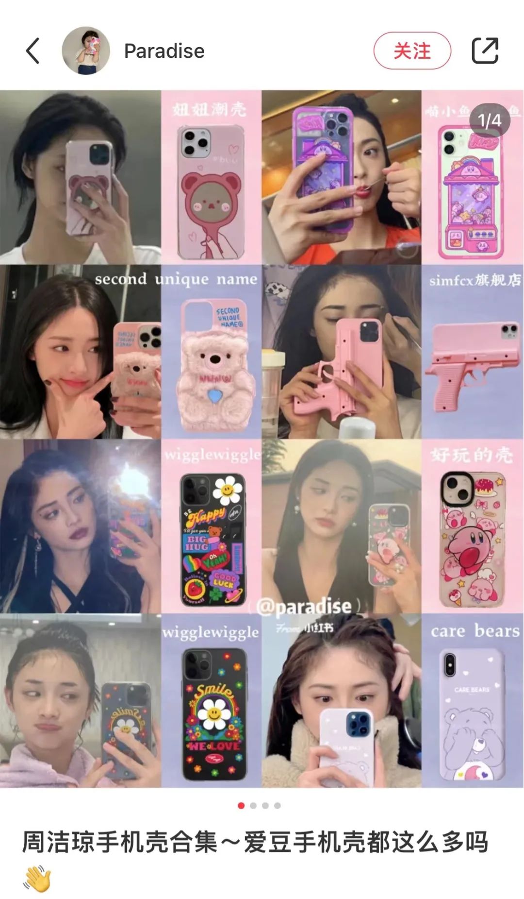 小红书上有关明星的同款手机壳追星女孩圆圆就是这样入坑的。她很喜欢韩国明星朴彩英、ROSE,刷明星社交账号的过程中,知道了wild flower和CASETiFY这类大牌手机壳。换了苹果13plus后,她抱着“好马要配好鞍”的想法,入手一批高价手机壳,其中最贵的500多元。只要手头宽裕,她每个月都会买两三个贵价手机壳,便宜的手机壳,只要喜欢就会买下来。