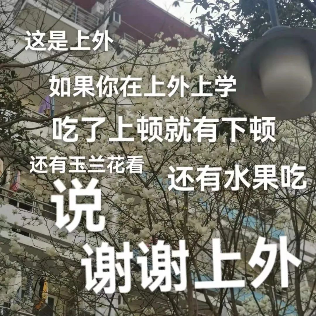 @苏杭_su:有一天下楼拿了饭和水果,一出阳台就能看到玉兰花,超级开心,做了一张表情包,然后“火”遍了学校。在疫情期间能让大家开心一下真是太有意义了,觉得自己也发挥了一些作用!