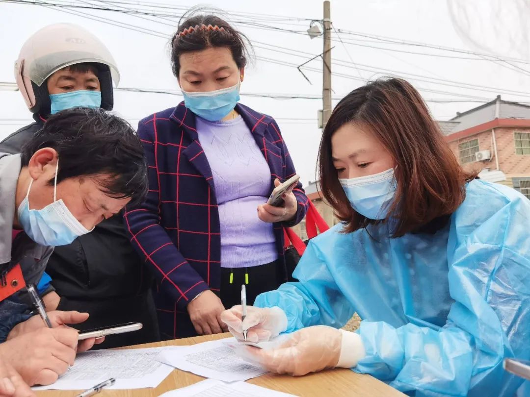 区教育局副局长陈颖婕参与法华村防疫工作,帮助居民操作手机进行核酸检测登记。三桥村