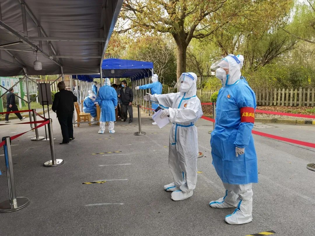 区政协经济委、民族宗教和港澳台侨委主任张夏清参与海畔居委防疫工作,引导群众有序排队,保障核酸检测点现场秩序。冯桥居委