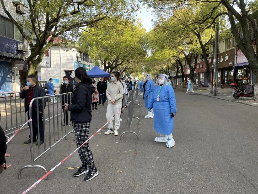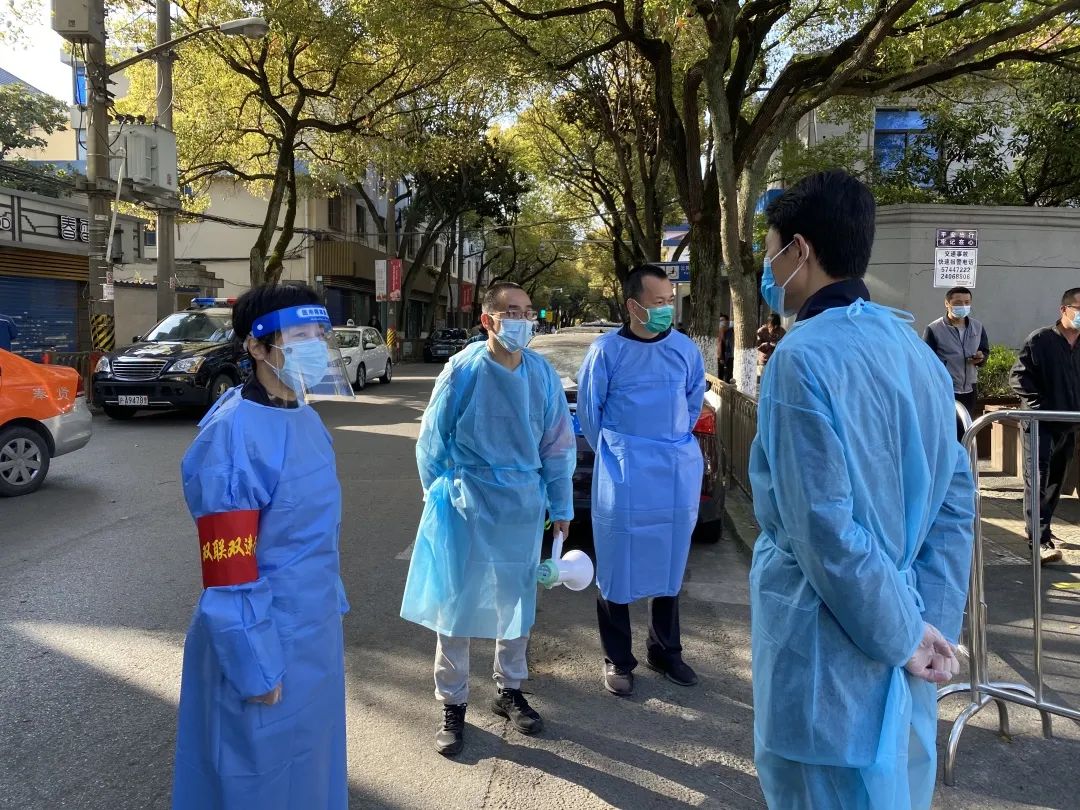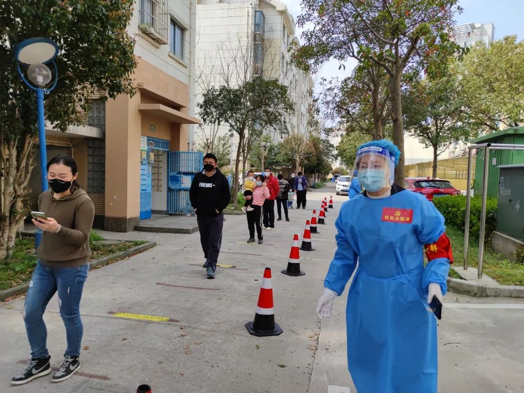 区市场监管局党组成员、副局长查红带领志愿者前往新寺居委志愿防疫工作,协助保障核酸检测现场秩序。胡桥居委