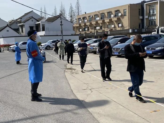 区政务服务办党组成员、副主任杜莹前往兴园村参加防疫工作,协助保障核酸检测点现场秩序。新塘村