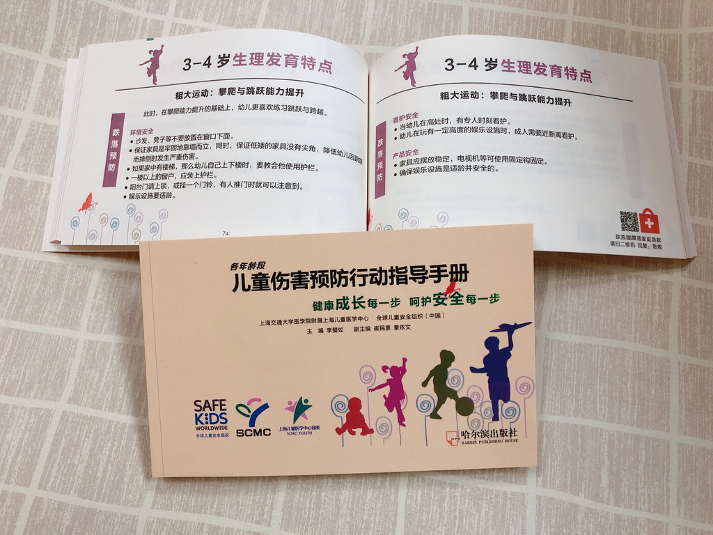 上海儿童医学中心医疗队方面表示,他们还为每个家庭准备了由该院主编的《儿童伤害预防行动指导手册》,该手册总结了儿童各年龄段的生理与心理行为成长特点,用于指导家长行动、教育和培养孩子安全行为。