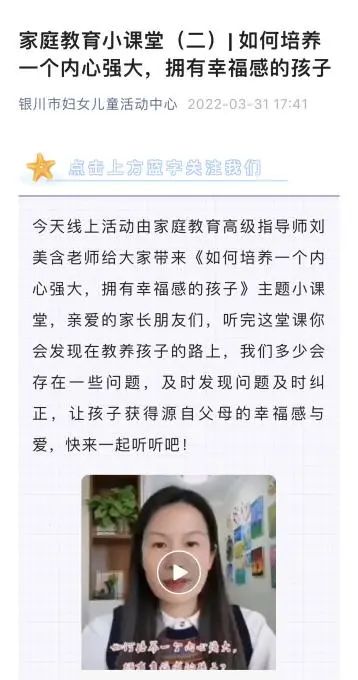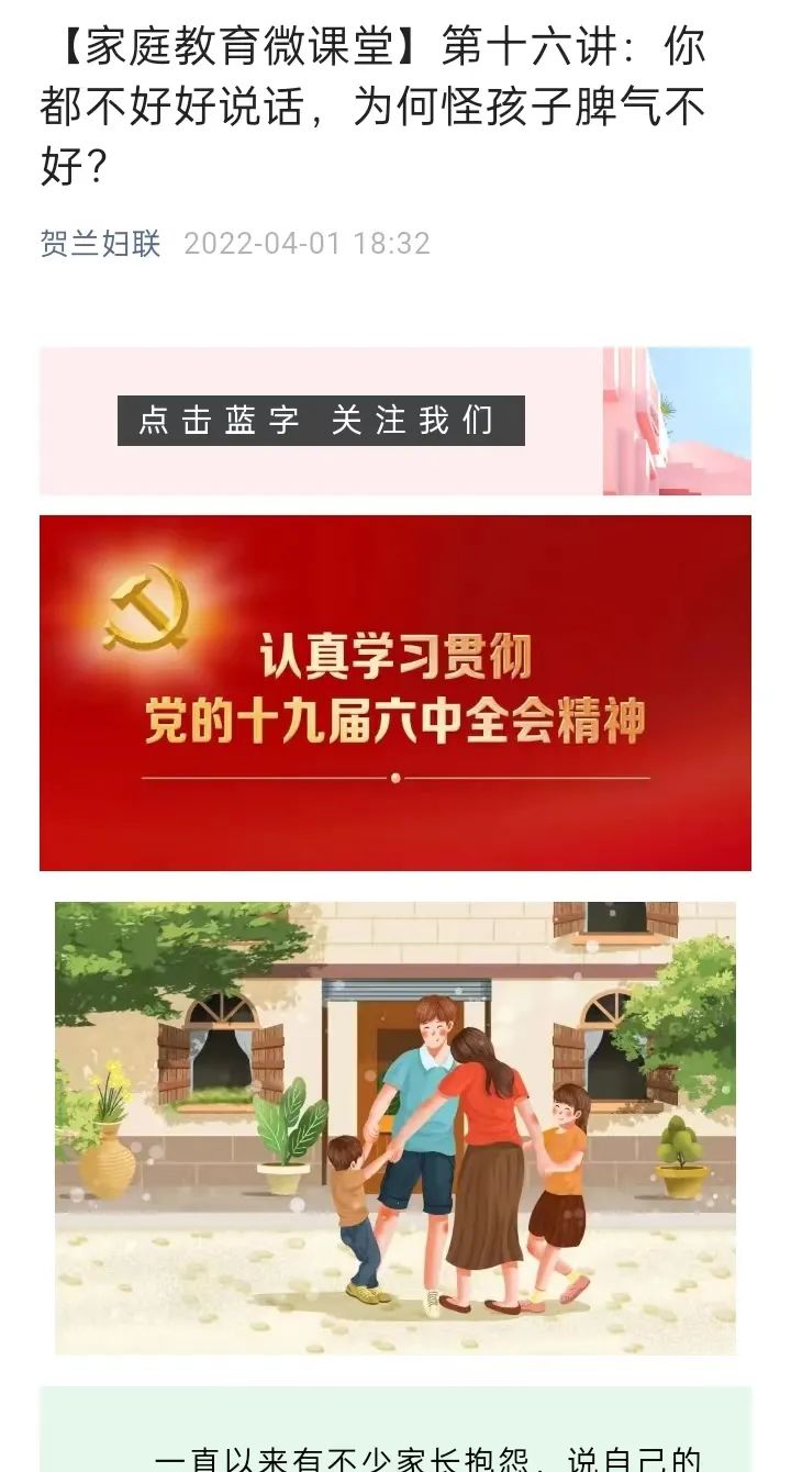 1.3月28日—4月2日,贺兰县妇联继续开展线上家庭教育微课堂(第13-16讲)。