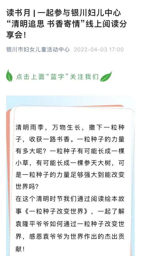 3.4月3日,银川市妇女儿童活动中心开展读书月系列活动之“清明追思 书香寄情”线上阅读分享会。