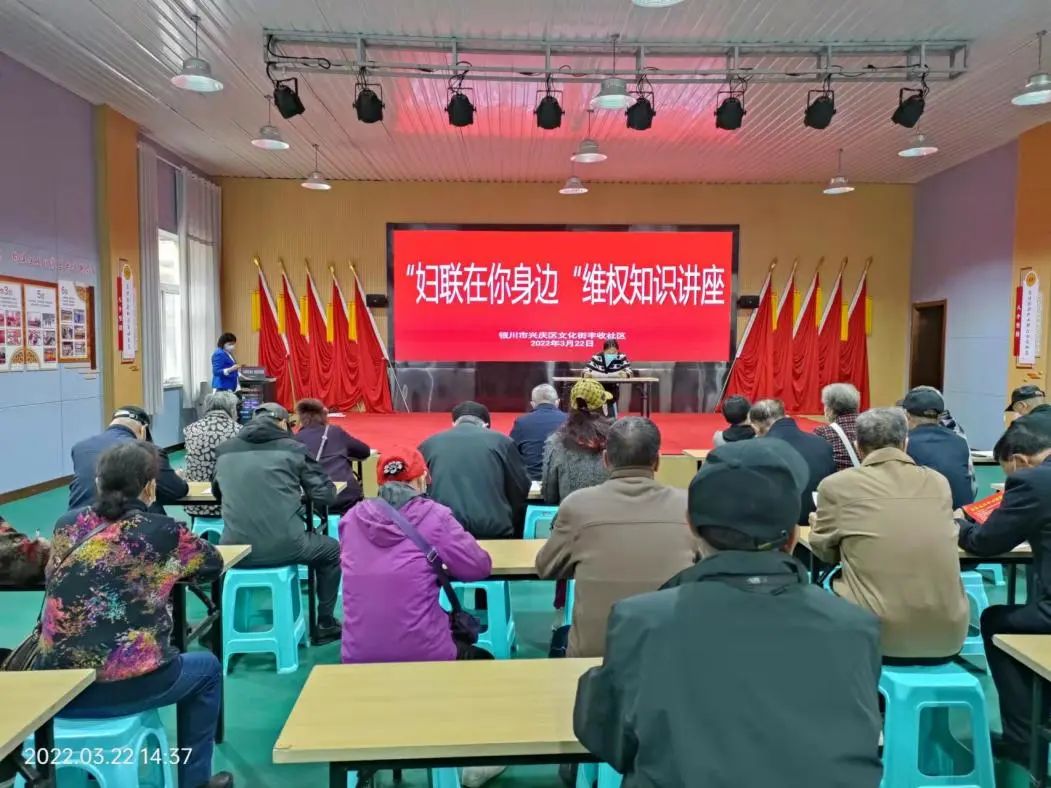 1.3月29日,兴庆区文化街丰收社区妇联开展“妇联在你身边”维权知识讲座。