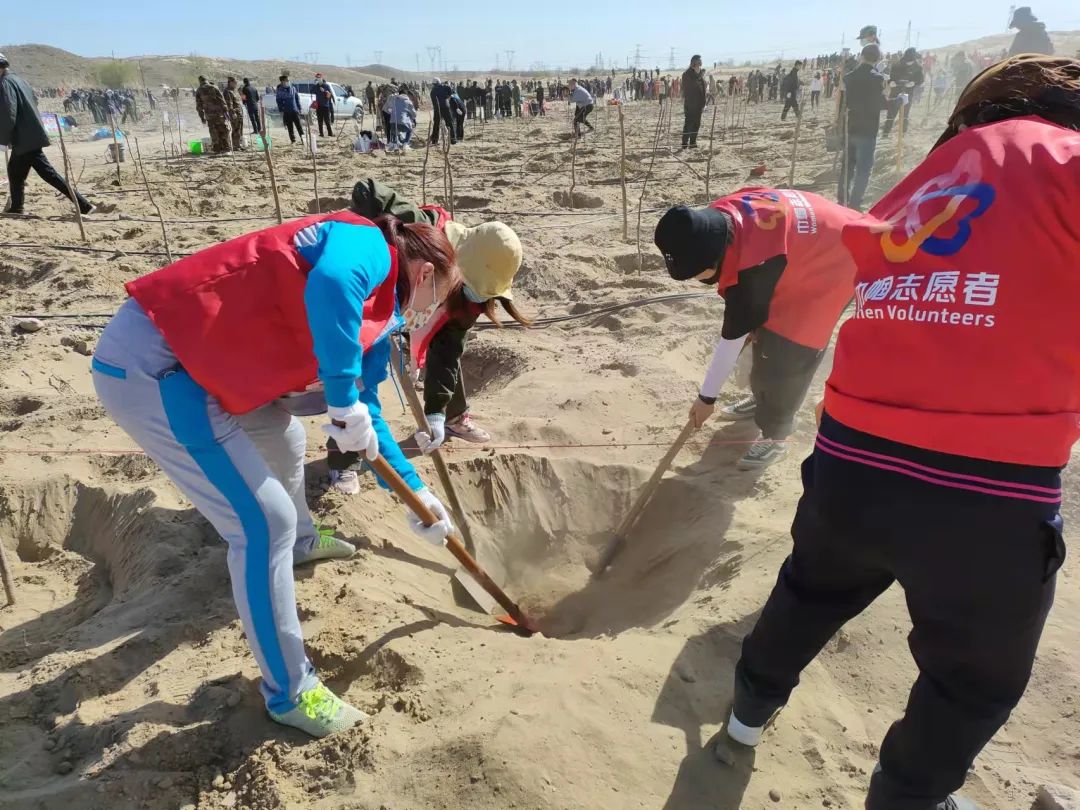2.4月2日,灵武市妇联干部职工参加2022全民义务植树活动。