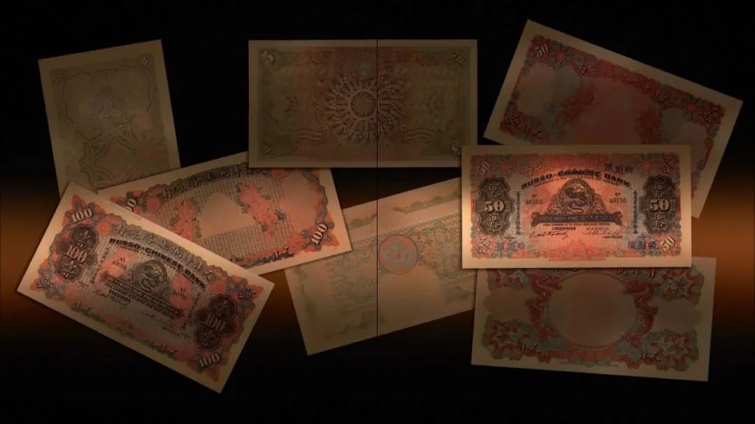 哈尔滨华俄道胜银行的伍百元流通券存世罕见,这是该行面额最大的银元票;哈尔滨分行还发行过伍拾两银两票,今已难觅踪影,仅有纸币票样存世。